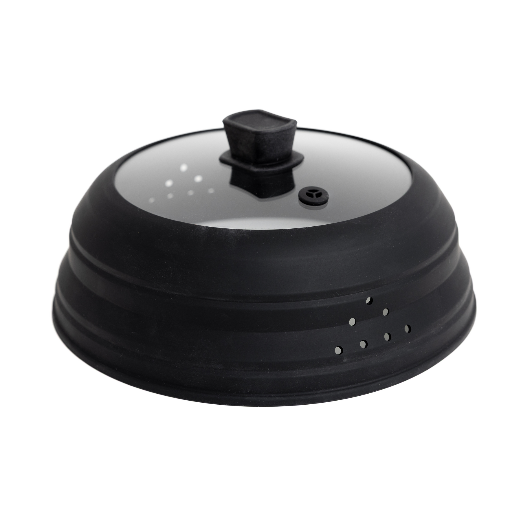 Our Collapsible Microwave Cover is crafted from durable tempered glass and silicone, with vented top and side openings that allow steam and condensation to escape for cleaner, more even heating. It folds down for easy storage when not in use and doubles as a pot-lid cover for added versatility. BPA-free and dishwasher safe for effortless clean-up.
